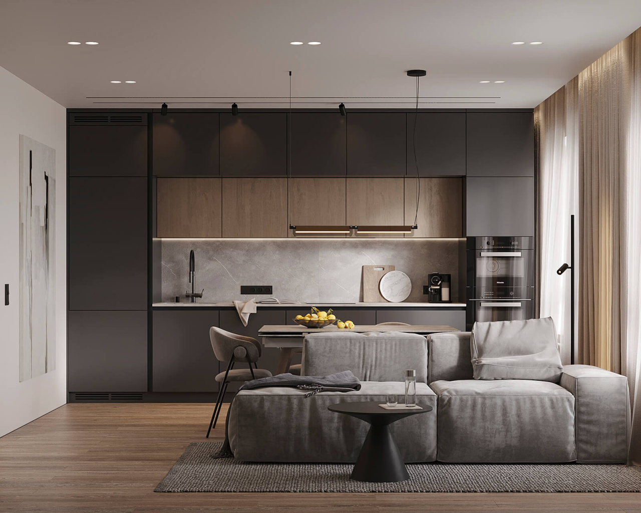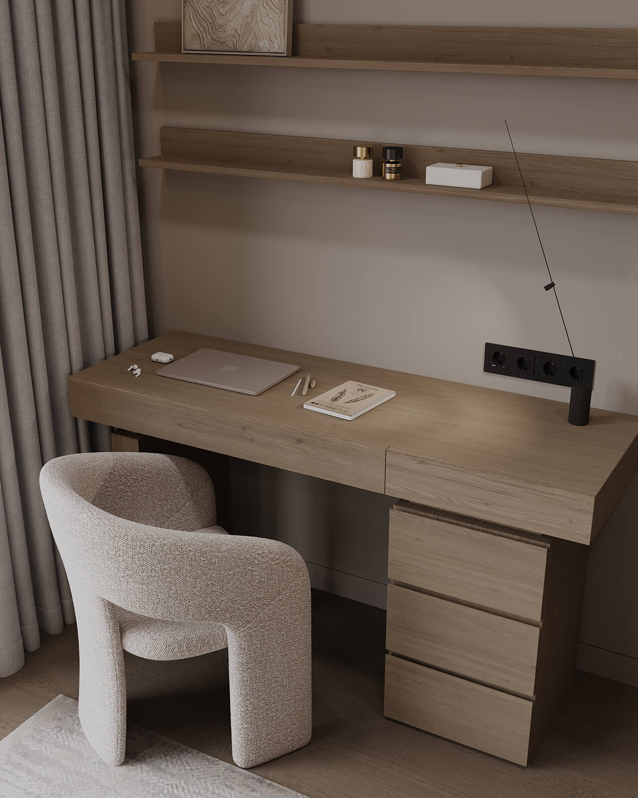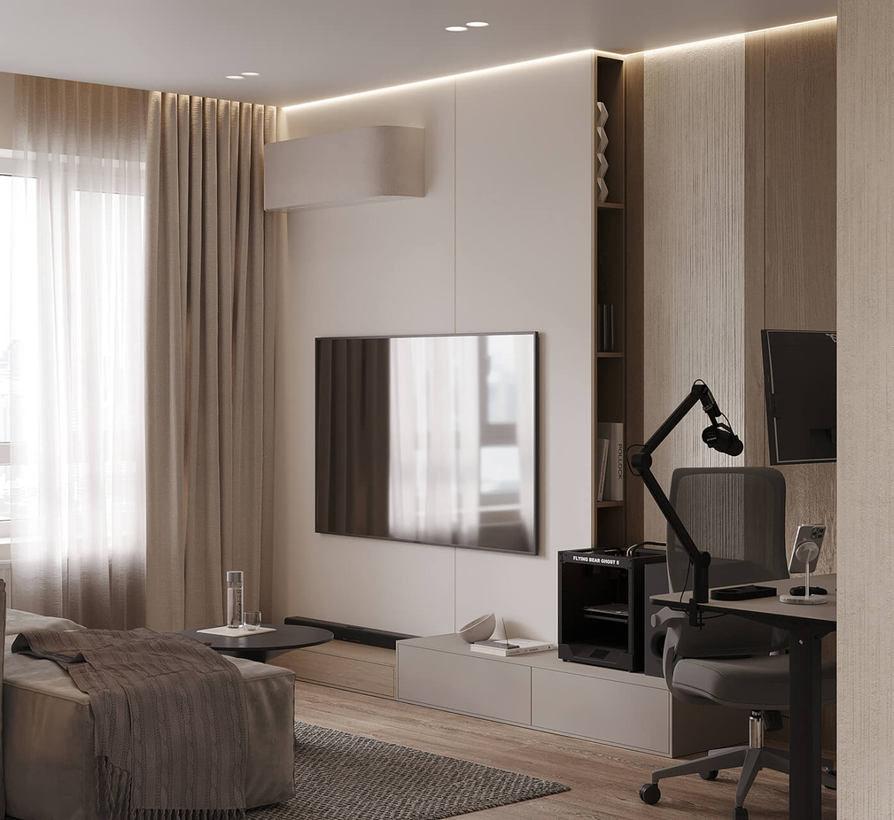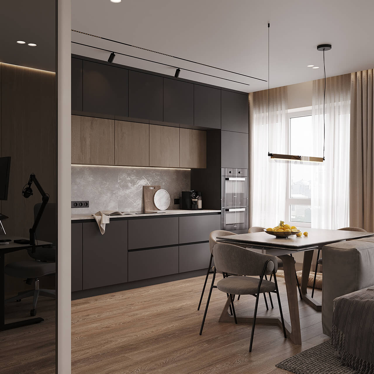 - Идеальную эргономику и функциональность. Мы продумаем зонирование, удобное расположение систем хранения и предметов интерьера, чтобы каждый метр работал на вас.