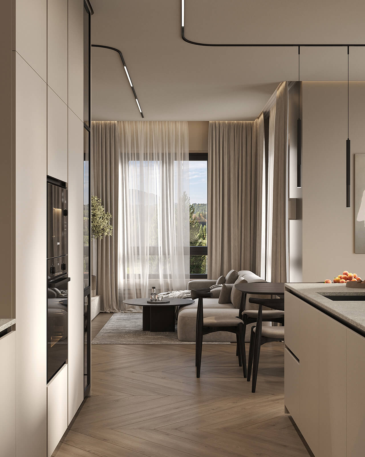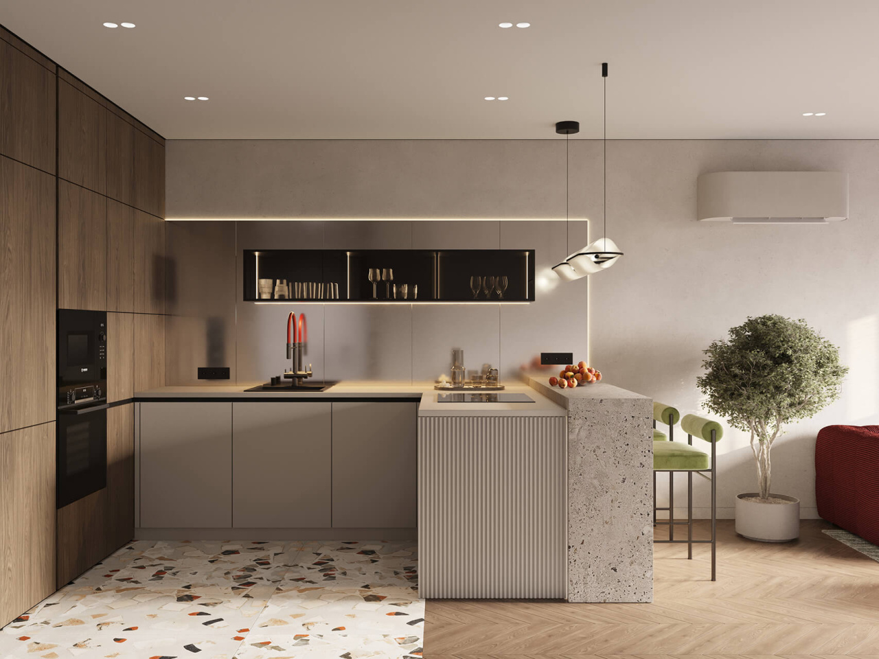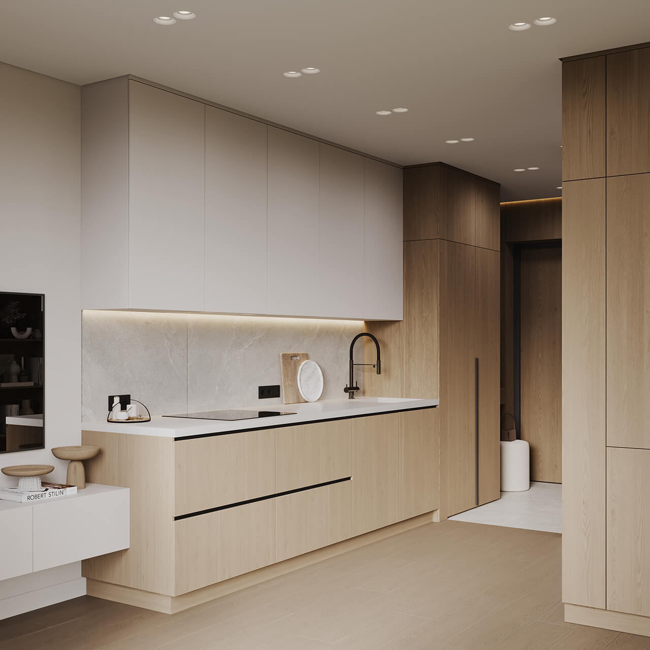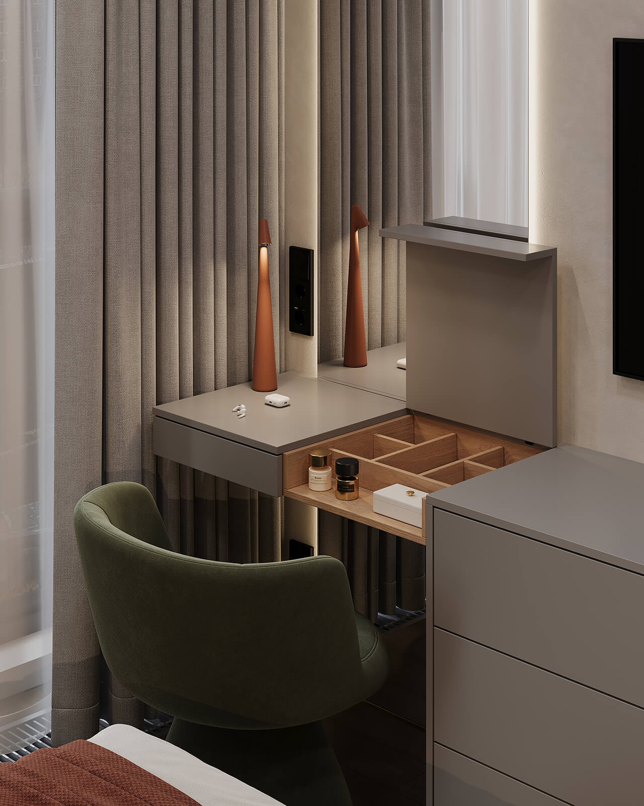 - Идеальную эргономику и функциональность. Мы продумаем зонирование, удобное расположение систем хранения и предметов интерьера, чтобы каждый метр работал на вас.