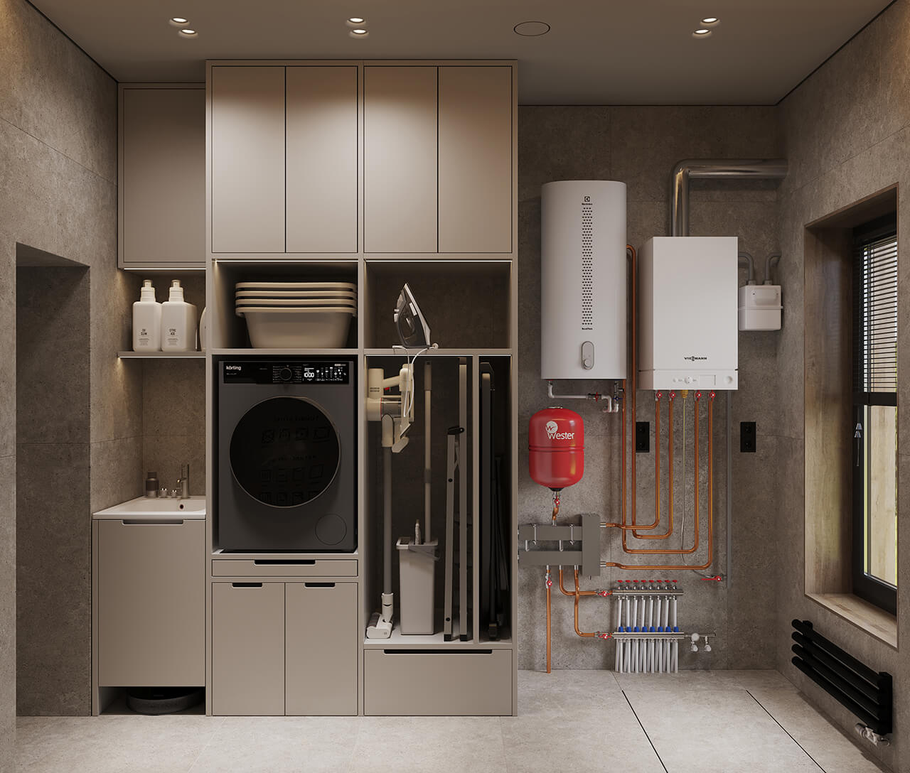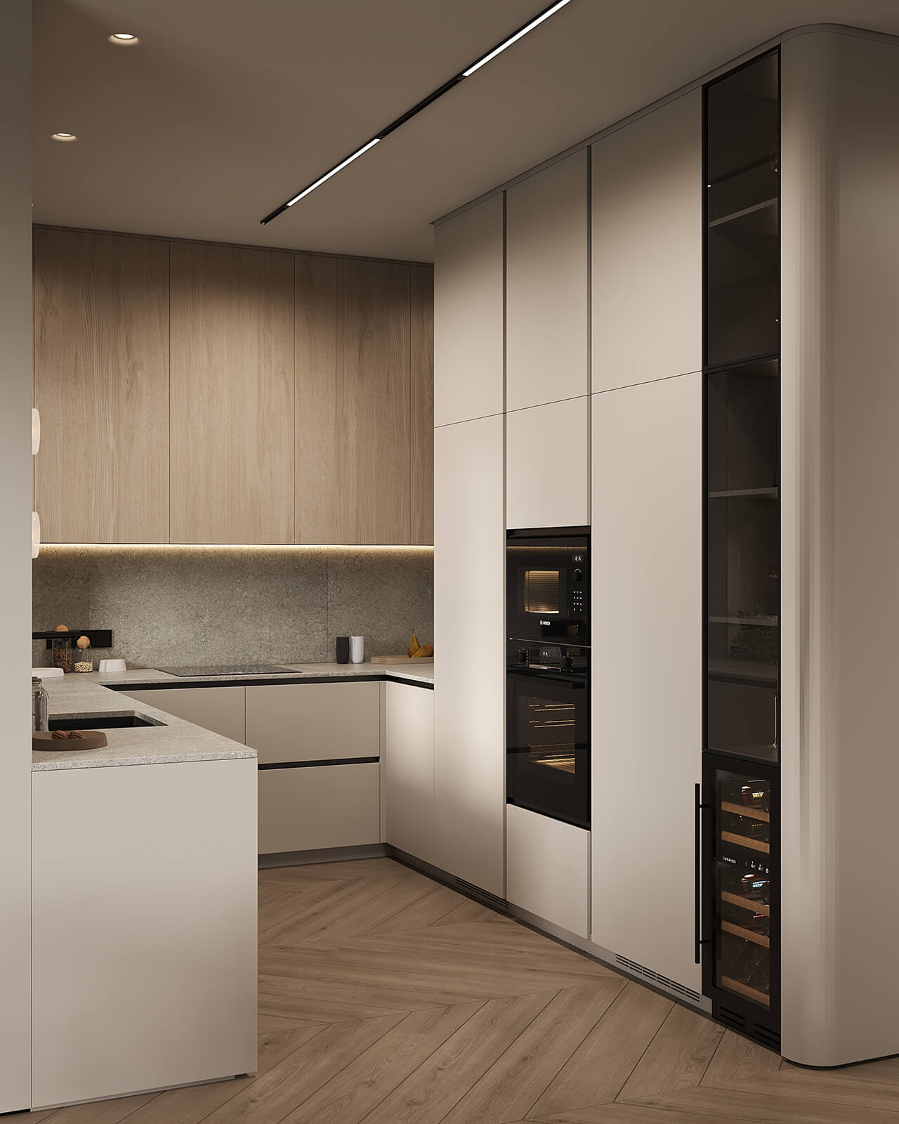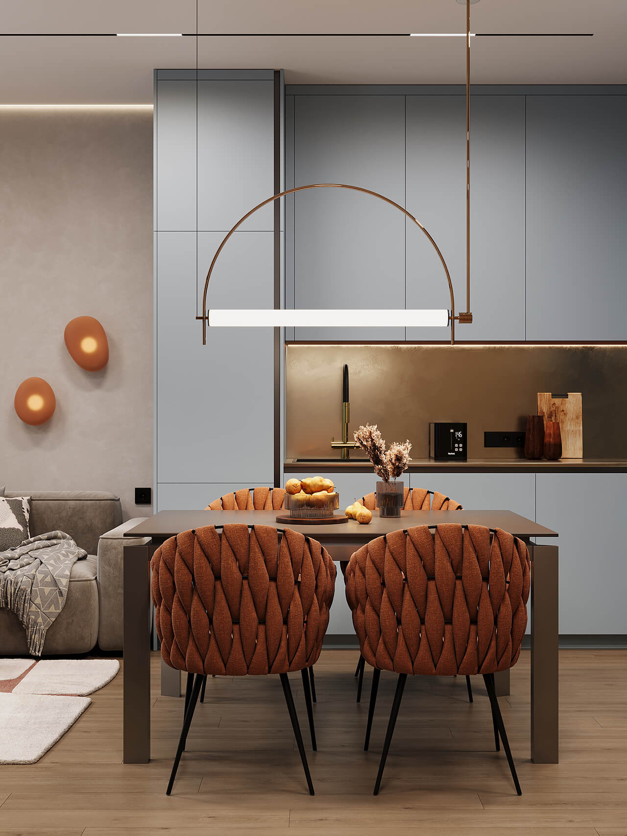Удобная эргономика и функциональность пространства, в которое будет включено все самое необходимое: расположение электрических узлов, проходы, расположение кухонной и другой мебели, освещение, как естественное, так и искусственное, местонахождение бытовых устройств.