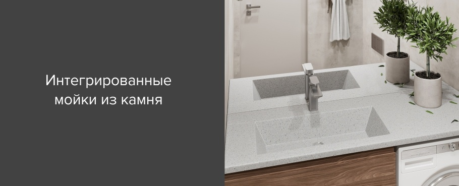 - используем надежную европейскую фурнитуру и качественные материалы, которые не боятся повышенной влажности — МДФ в эмали и шпоне, искусственный камень.