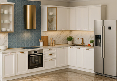 Заказывали кухню вместе со всей необходимой встроенной техникой. Были удивлены, что встроенная микроволновая печь меньше по вмещаемости. Хотя менеджер предупреждал об этом. В целом очень довольны приобретением. Качественные доводчики, фасады не скрипят. Визуально очень красиво смотрится.