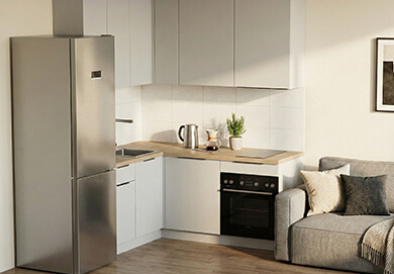 В комплектацию входят: сушка для посуды, врезка варочной поверхности. Бытовая техника в стоимость не входит.