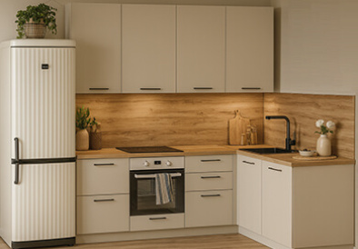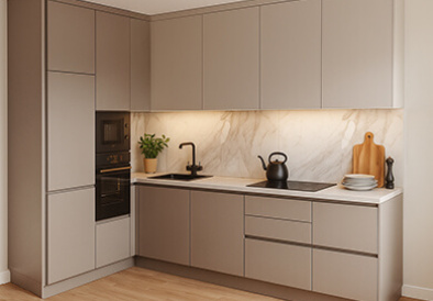 Заказывали кухню вместе со всей необходимой встроенной техникой. Были удивлены, что встроенная микроволновая печь меньше по вмещаемости. Хотя менеджер предупреждал об этом. В целом очень довольны приобретением. Качественные доводчики, фасады не скрипят. Визуально очень красиво смотрится.