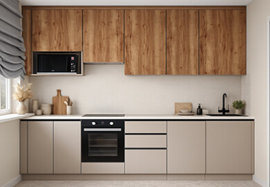 Заказывали кухню вместе со всей необходимой встроенной техникой. Были удивлены, что встроенная микроволновая печь меньше по вмещаемости. Хотя менеджер предупреждал об этом. В целом очень довольны приобретением. Качественные доводчики, фасады не скрипят. Визуально очень красиво смотрится.